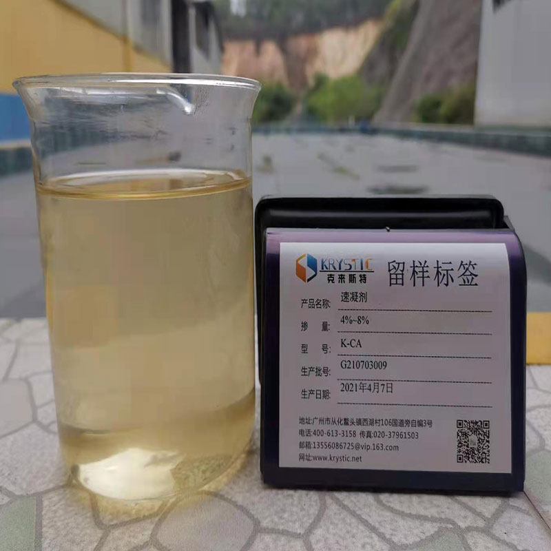 固特稳K-CA速凝剂是以我公司的无碱速凝剂母体(基体)为主要原料,复合适量水溶性的无机化合物而成。具有碱含量低(<1.0%)、不含氯盐、储存稳定性好、无结晶沉淀、粘度低、容易输送等优点,克服了液体速凝剂容易分层沉淀、粘度大和腐蚀性强等缺点。
